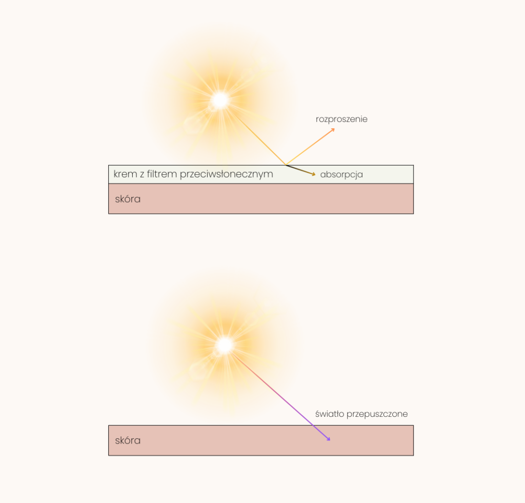 Udowodniono, że zarówno filtry chemiczne jak i fizyczne działają poprzez pochłanianie oraz rozpraszanie promieniowania UV. Jedyną różnicą jest to, że w zależności od grupy dzieje się to w różnym stopniu.