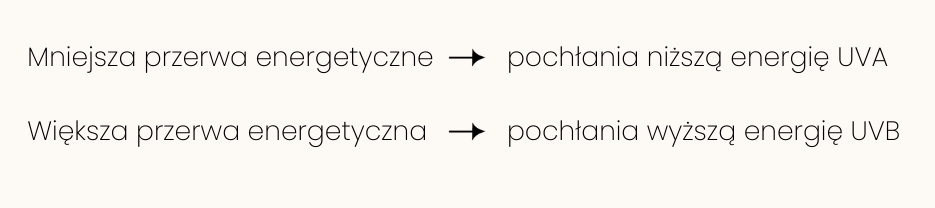 W cząsteczkach filtrów mineralnych zamiast niższego poziomu energii (stanu relaksacji) i wyższego poziomu energii (stanu wzbudzonego) występuje pasmo niższej i wyższej energii, a każde z nich składa się z wielu poziomów. Przerwa pomiędzy górnym a dolnym pasmem pozwala na absorpcję energii UV.