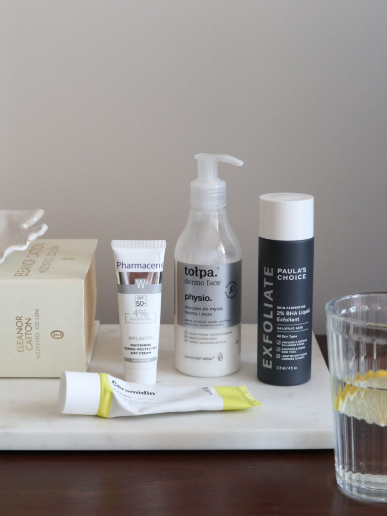 Przekonałam się, że w mojej rutynie pielęgnacyjnej nie potrzebuję dziesięciu etapów, wystarczą mi trzy, czasem cztery. Najważniejsza zasada jaką się kieruję się jest taka, aby nie przesadzać z ilością kosmetyków nakładanych na twarz, a tym samym nie przeładowywać skóry substancjami aktywnymi.