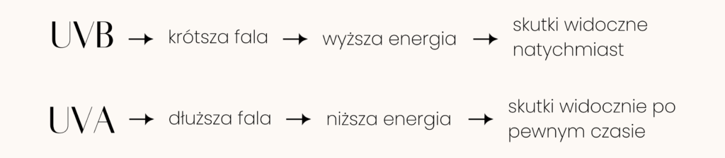 Nie dość tego, w zakresie promieniowanie UVA możemy wyróżnić UVA2 i UVA1.