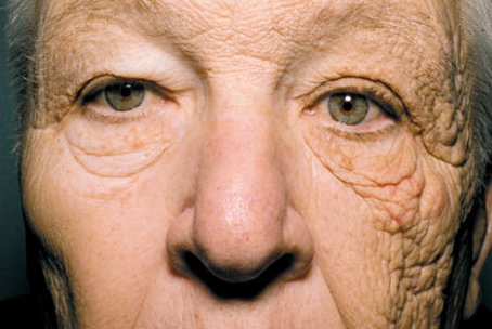 W 2012 roku to zdjęcie obiegło świat. Przedstawia twarz kierowcy, który przez 28 lat prowadził ciężarówkę. Ta strona twarzy, która była eksponowana w samochodzie na słońce ma widocznie więcej asymetrycznych zmarszczek i wygląda po prostu staro. To dowodzi, że nadmierna ekspozycja na słońce, nawet w pomieszczeniu zamkniętym, skutkuje zmianami skórnymi.
